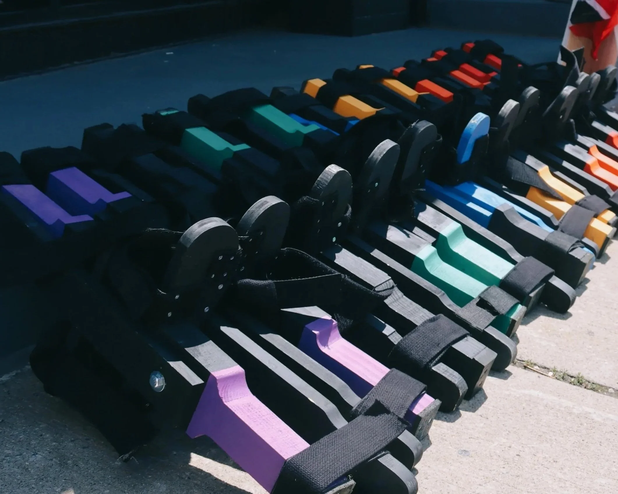 Shorter stilts reduce the risk of injury by minimizing falls and giving participants the ability to practice safely while getting comfortable with balance and movement.